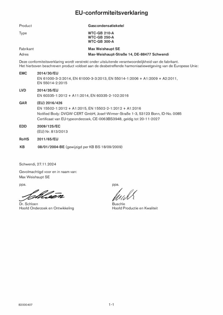 Conformiteitsverklaring WTC-GB 210-A 250-A 300-A